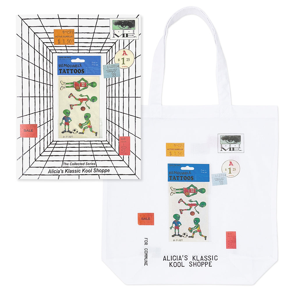 彼女の嗜好や作品づくりのプロセスを読み解く上でも見逃せない、コラージュ作品や愛蔵玩具を収録したビジュアルブックの完全版「The Collected Series Alicia's Klassic Kool Shoppe」を中心に、本pop-upで初お披露目となる新作Tシャツやトートバッグなど、マーチャンダイズも展開します。この機会に是非、Alicia Nautaの世界をご堪能ください。