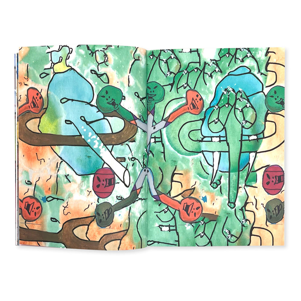 This is a collection of works released at the two-person exhibition "IJMIA THING" by Leomi Sadler, a UK-based artist who creates a strange and humorous visual world influenced by underground comics and DIY culture, and Russell Maurice, a British artist living in Japan who is widely known as "Gaius."