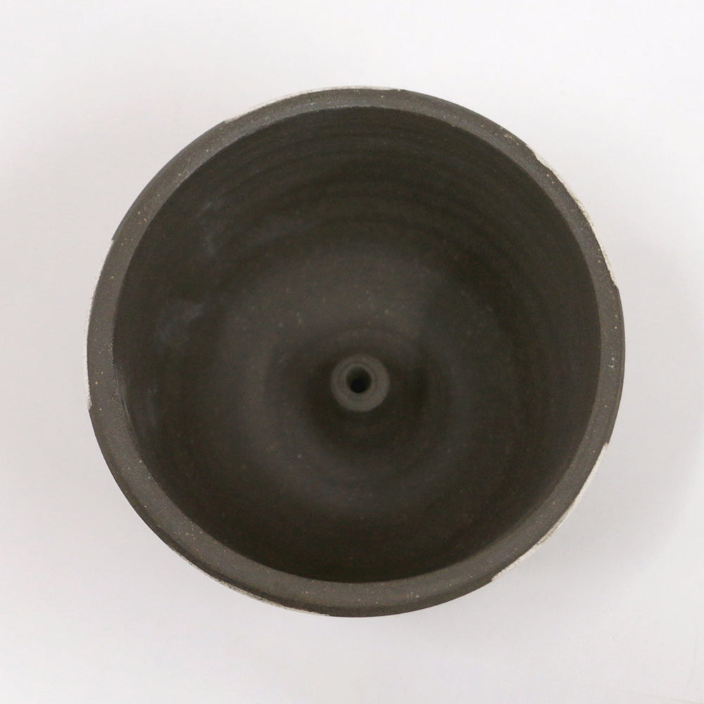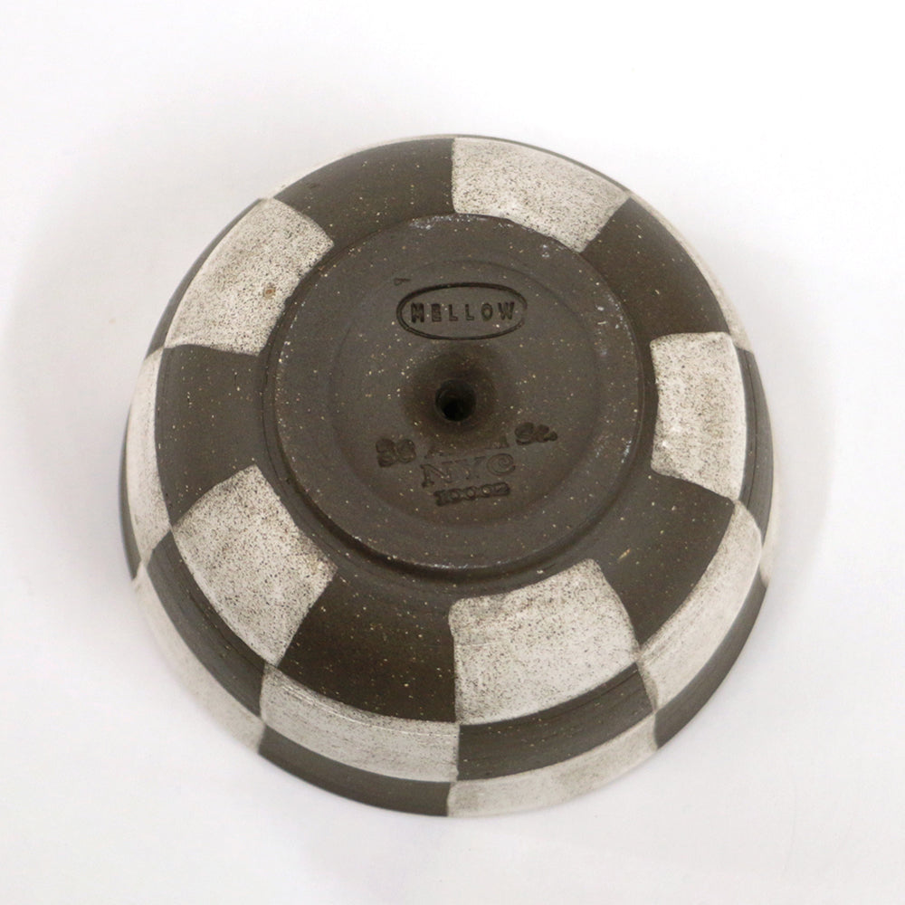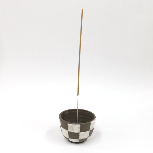This incense holder is from Mellow, a handmade ceramic brand by Elise Grace Wilken. The back is engraved with the Mellow logo and address.