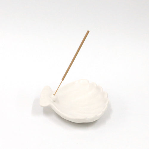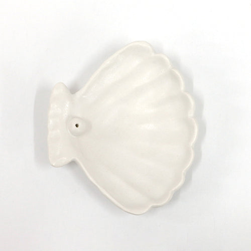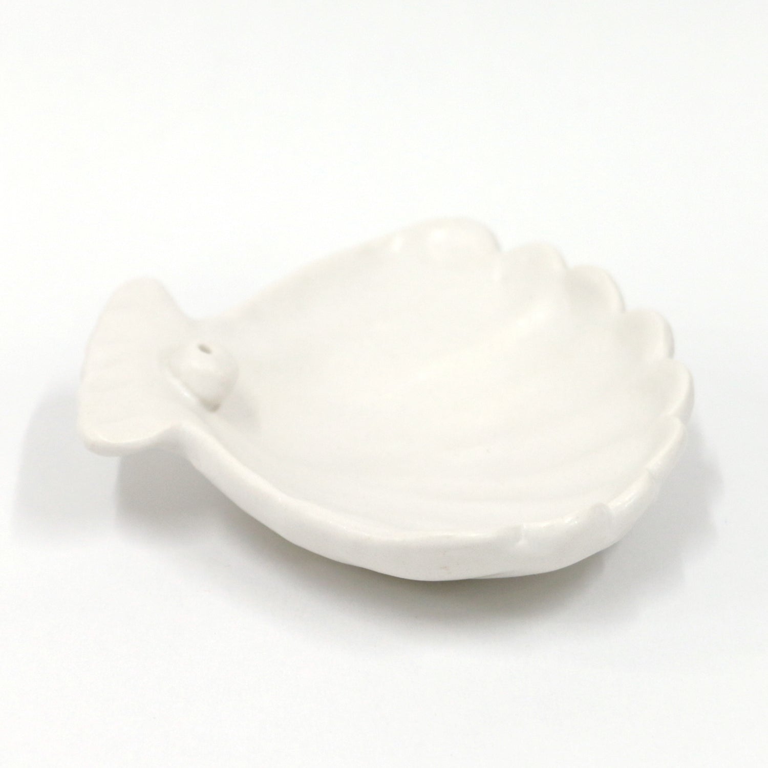 This incense holder is from Mellow, a handmade ceramic brand by Elise Grace Wilken. The back is engraved with the Mellow logo and address.