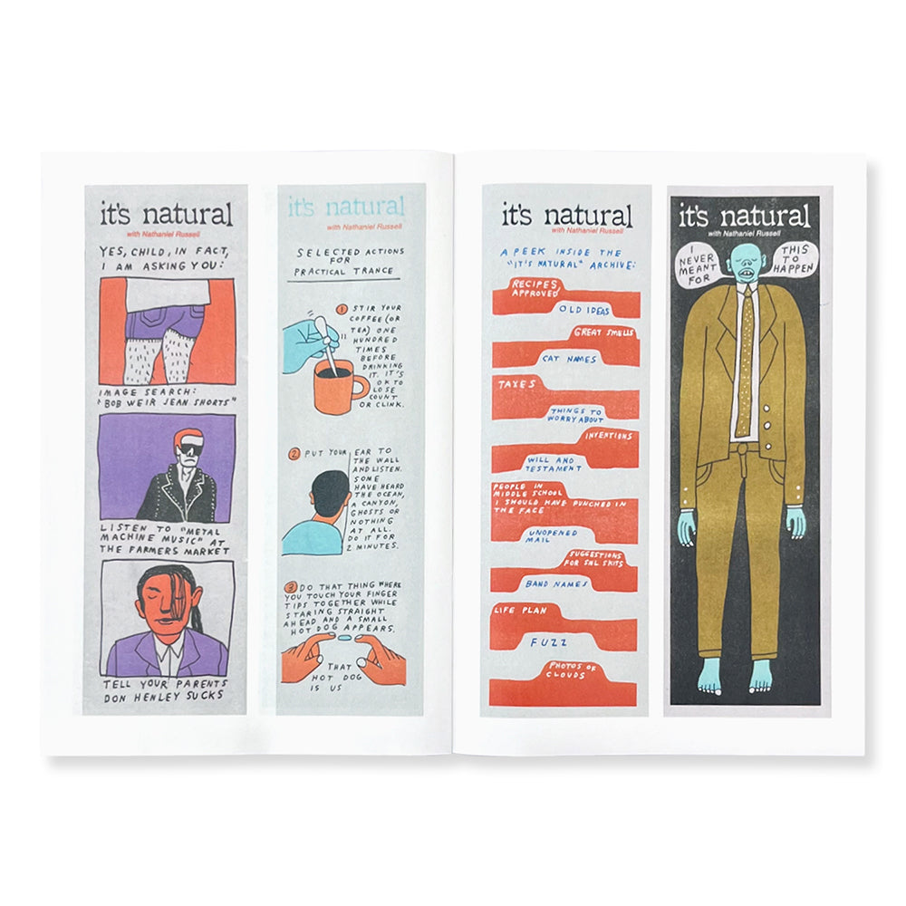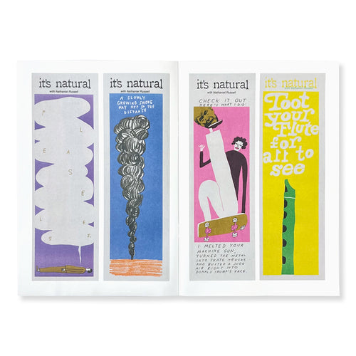 Nathaniel Russell appeared in The Smudge, a monthly newspaper published by Caboose, run by Clay Hickson, from 2017 to 2021. The column "It's Natural" was serialized monthly.