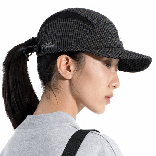 上海のクリエイティヴスタジオ Same Paperのアパレルライン amateurの2025 秋冬コレクション。Knee Hatシリーズのグリッドデザインバージョン。フロントに刺繍、サイドにリフレクティブプリントでロゴが落とし込まれています。