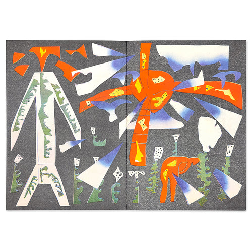 本作は2025年9月にgallery communeで開催された個展 Tokyo Book Launch & Art Exhibition For “BIG POOL”で初披露された全10作品をリソプリントで完全収録したものです。カード、スプレー、アクリル、ペン、クレヨンといった素材を用いて制作された作品群は「Volcano (火山)」をテーマに、噴火の瞬間とその後に広がる情景を、簡潔ながらもエネルギッシュに表現しています。大地の鼓動を感じさせるようなスケールの大きな作品世界を、リソプリントならではの風合いとともにご堪能ください。