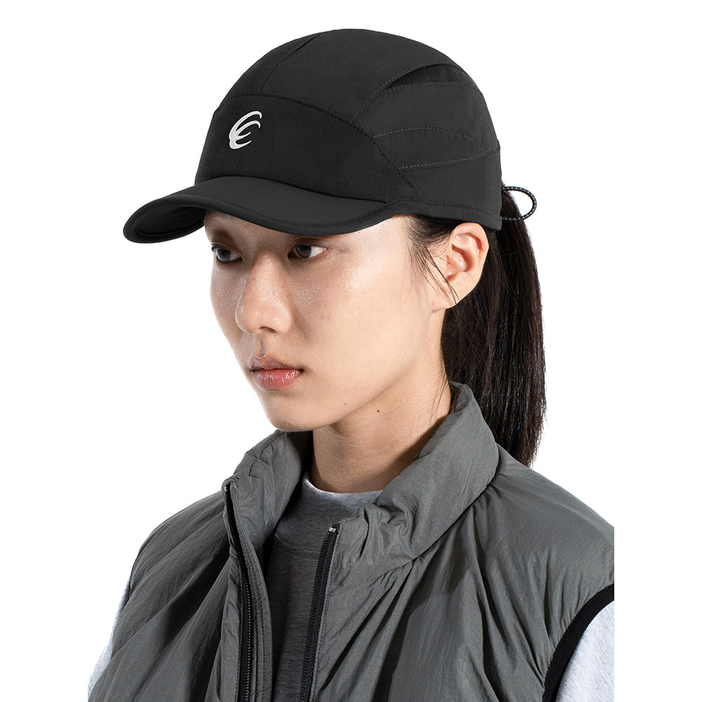 上海のクリエイティヴスタジオ Same Paperのアパレルライン amateurの2025 秋冬コレクション。Knee Hatシリーズのナイロンバージョン。フロントに刺繍、サイドにリフレクティブプリントでロゴが落とし込まれています。短めのツバが曲がるフレキシブルバイザーです。