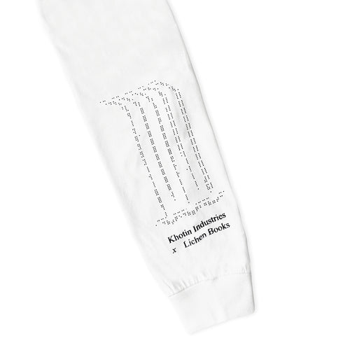 カナダ エドモントン拠点のミュージシャン/ビジュアル・アーティスト Dylan Khotin-Footeが手掛ける“Khotin Industries”と、ロンドンの出版レーベル Lichen Booksによるコラボレーション長袖Tシャツ。