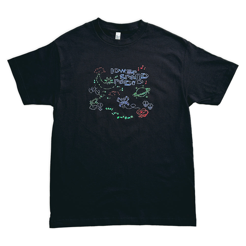 カリフォルニア州 オークランド拠点のインターネットラジオプラットフォーム Lower Grand Radioの半袖Tシャツ "Feel the Stream"。