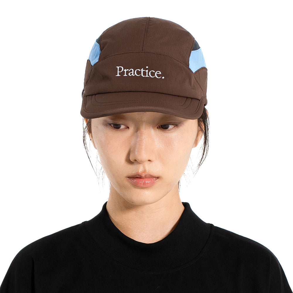 Knee Hatシリーズのナイロンバージョン。フロントにPractice.の刺繍、サイドにリフレクティブプリントでロゴが落とし込まれています。短めのツバが曲がるフレキシブルバイザーです。