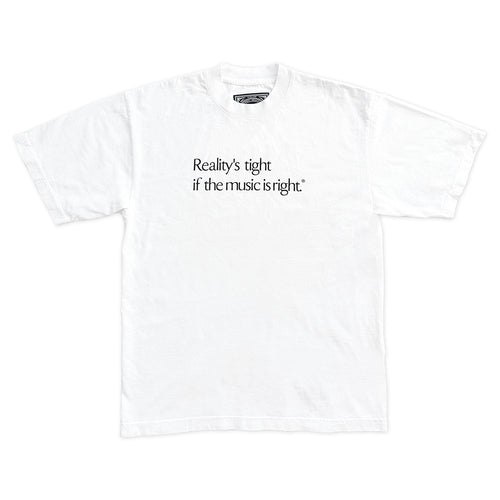 Toro y Moiとして知られるChaz Bear率いるCompany StudioのReality's Tight® Tシャツ。「音楽さえよければ、どんな現実でも乗り越えられる。」音楽の力で現実を肯定的に受け入れようという熱いメッセージが込められています。